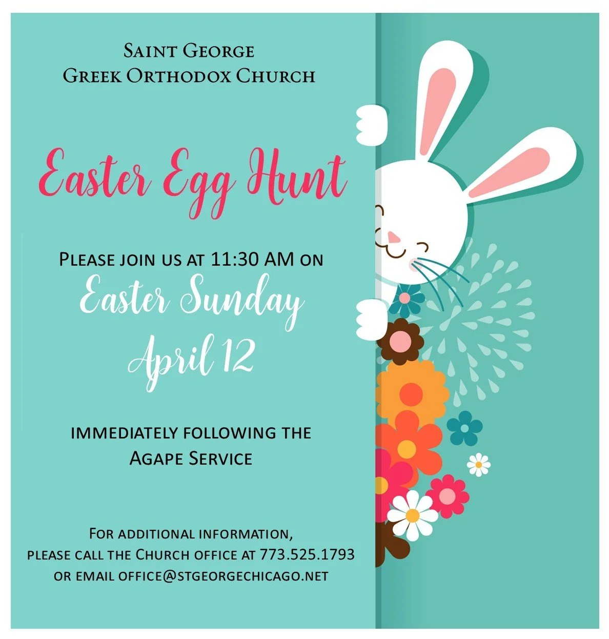 Christ is Risen! Easter Egg Hunt will be held at church following Agape Service on Easter Sunday! Wear your bunny ears and join us!