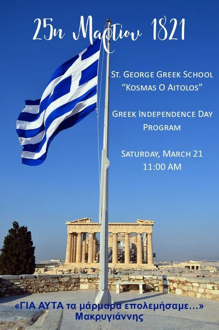 Our Greek School students will be celebration Greek Independence Day on March 21 starting at 11:00 AM.