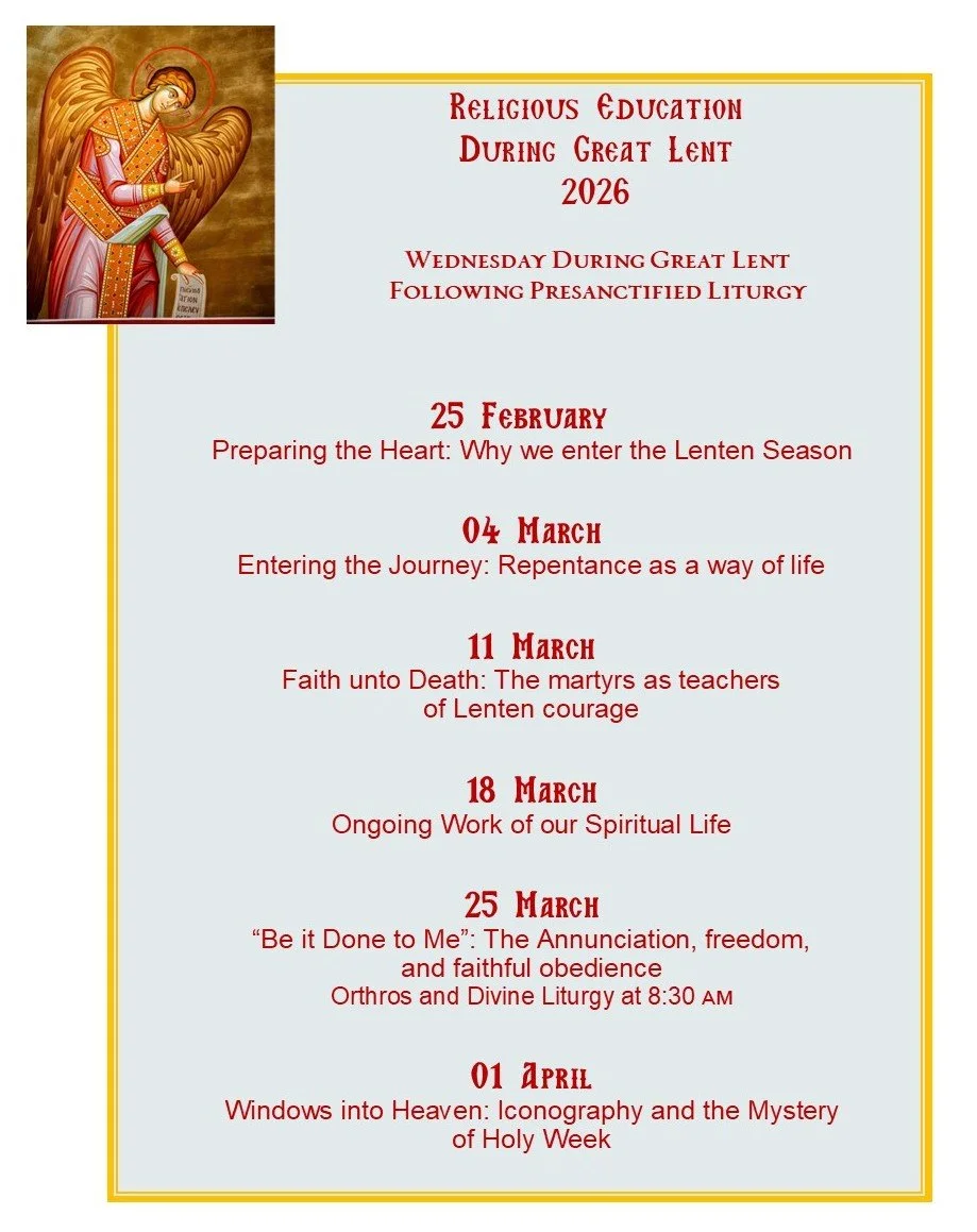 Join us after Presanctified Liturgy on February 25th, in our downstairs Conference Room, for our Religious Education Seminar.
