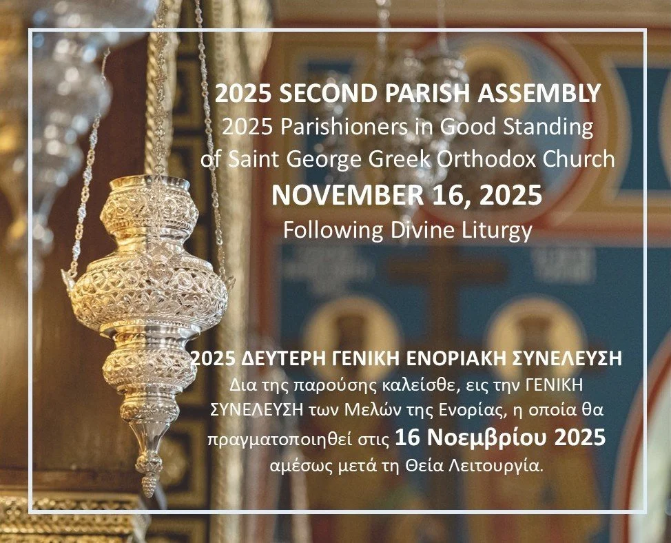 A Parish Assembly of parishioners in good standing of our Church will be held on Sunday, November 16, 2025, immediately following Divine Liturgy.